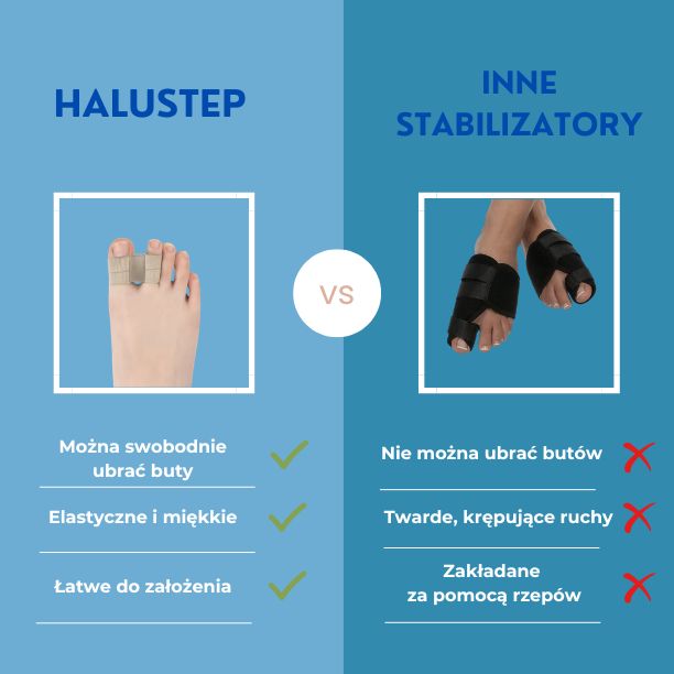 Halustep skutecznie koryguje ustawienie dużego palca, przywracając jego naturalną pozycję.